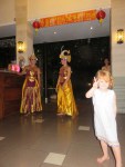 Dinner was nice and we enjoyed both vegetarian dishes as well as chicken and fish. Both lunch and dinner has been excellent and I hope this will be representative for the week. And then we were suprised by a couple of dancers doing a traditional Balinese dance.
