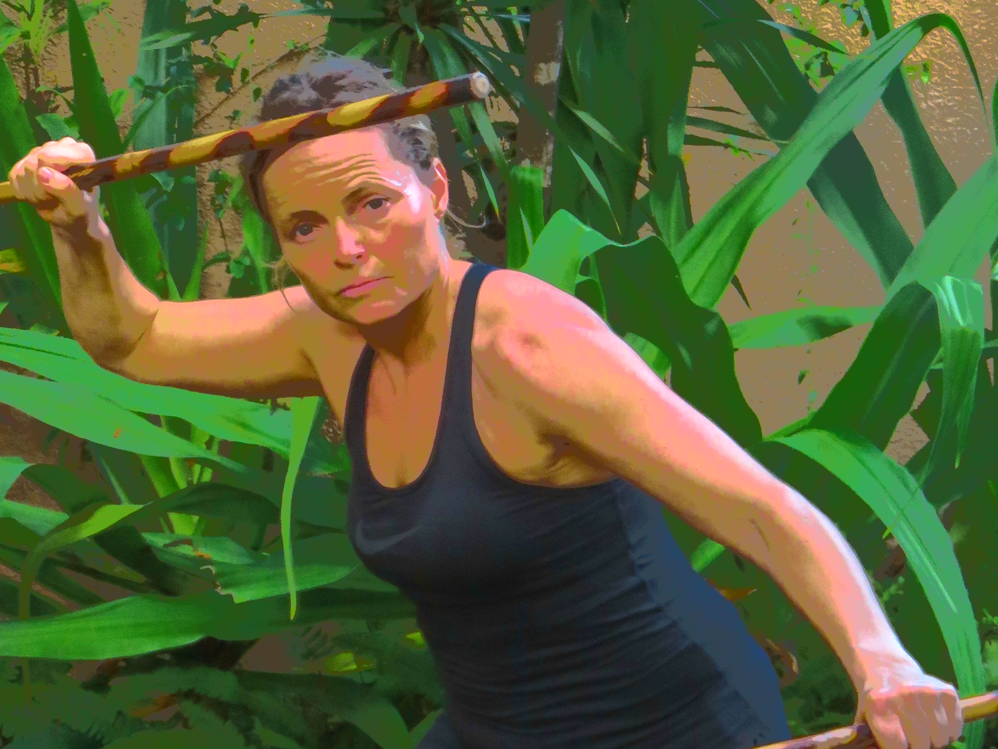 Today we start at six o’clock and spend two hours of stick work and an hour of yoga before breakfast.