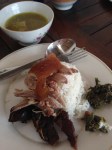 The rain trickles but cannot stop our hunger for babi guling. We dress like locals in plastic non breathing poncho and drive off. It’s not far and the rain stops just as we park at the warung. It’s delicious. I have two portions and could easily had a third if I wasn’t thinking about the quote:”Once on the lip, forever on the hip”.
