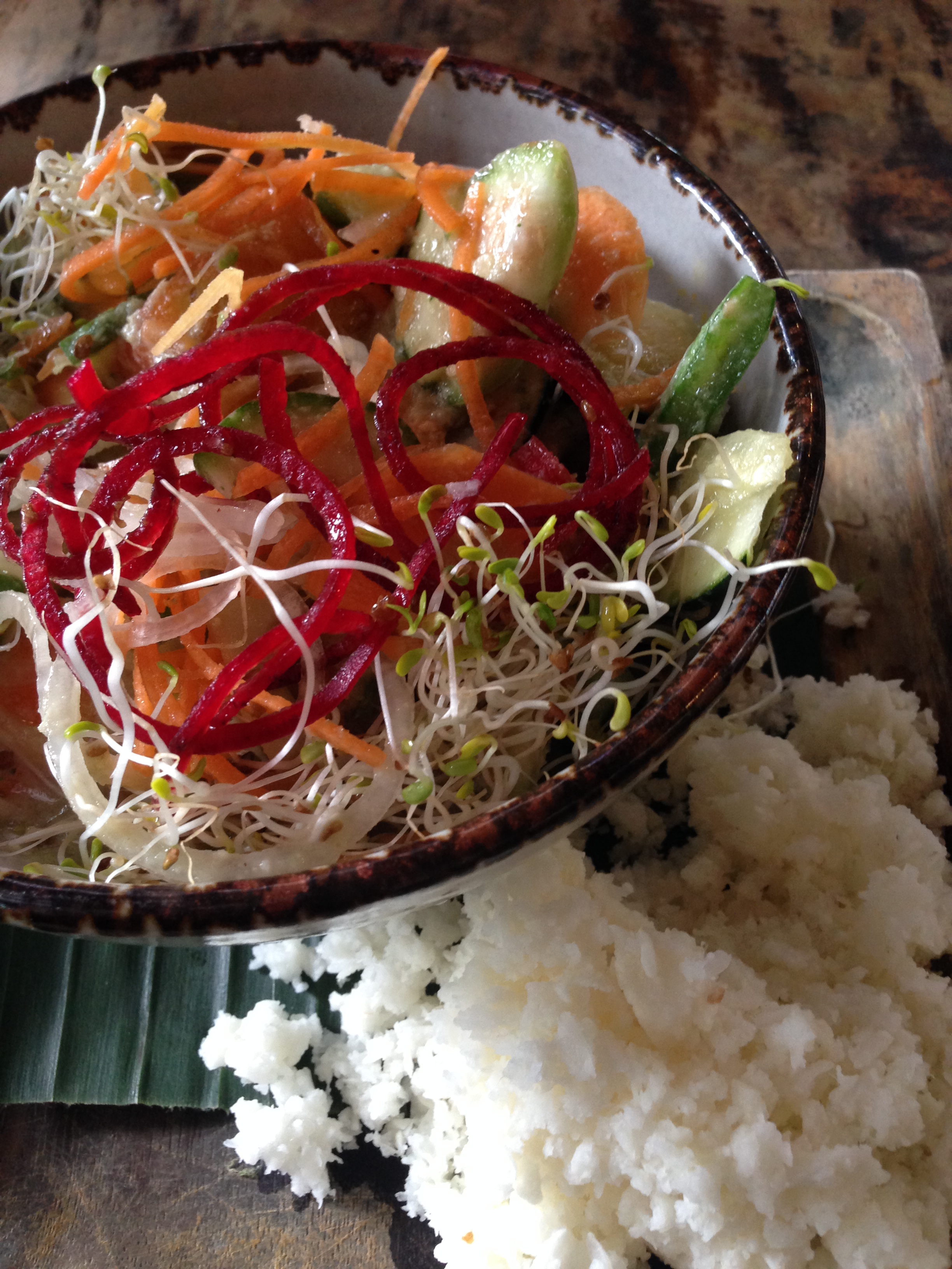 Yin yoga is softer and more relaxed than power yoga. That does mean it’s any less painful. On the contrary, actually. Today we did rolling on tennis balls to release the muscles and to open energy paths. Try if you don’t believe me. Take two tennis balls and put them under your shoulder blades and easily roll around on them. Or put them under your bum cheeks while lying down with feet in the air, while slowly moving the feet to left and right. Ok, believe me now? Keep doing stuff like that for ninety minutes. It’s said that the best part of hitting your head repeatedly against the wall is that it feels so good when you stop. There is some truth to that. One and a half hour after we started I stumble down the stairs and into the shower. Mostly cold water makes for a refreshing wash and I’m good ‘n ready for lunch.