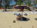 There is a new law recently passed here in Phuket that regulates the sunbes. Yep, a new law to battle the people doing monkey business at the beach. So we don’t get to rent sunbeds anymore, but you can get a mattress on the beach with an umbrella. Just what we need.