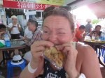 Katja got hungry again and dragged me across the street to a local Chinese inspired restaurant. It claimed to be “Phuket original Hokkian noodle.” Hokkian is a region in China if I got it correctly, and judging from the food here a place worth visiting. We enjoyed pork, curry and some serious chili. Double yummy.