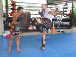 Moo tells me he’s sorry before we begin and when we end every round of pad works with ten kicks on each foot I get it. It’s the end of a road. Our at least a pit stop. We’ll do Muay Thai at Mandirigma camp also. But it’s the end of the line here at Tiger. I do a lot better than when I started, and I’ve learned some cool tricks. Maybe you can learn old dogs new tricks after all…