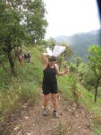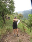 One of our fellow hikers told us that :”if you don’t like the weather in Chiang Mai just wait ten minutes.,” That was just about how long it rained. Jackets off again, as it gets warm with the temperature and humidity. Steven stayed behind to take care of the American girls for this last stretch. They were both really beat and I think it gave them a little comfort to have an old dog like Steven showing them down.