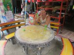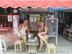 Just before we turn off the highway we break for lunch at a little roadside place. We get the best fruit shake in ages and a noodle soup with pork. Katja described it quite good when she exclaimed:”little meat, lots of liver.” Buy hey, everyone needs iron in their diet. It tasted good though, so no complaints.