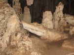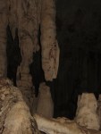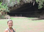It’s a short walk from the entrance of the park to the cave. There’s a little stream flowing into the cave and were transported on as bamboo raft. The entrance is filed with birds flying catching insects. Birds poop. A lot. We got through the first part and then darkness fell upon us. Our guide has a kerosene lamp that she uses to guide us. We’re let of the raft and start walking into that darkness. The guide, a little lady that’s so little she barely keep the lamp off the floor, tells us in on word the different things to see. ” Elephant”, “Snake” and so forth. It’s only one source of light, the kerosene lamp. If that were to go out it would be pitch black. Luckily it doesn’t and we walk through a loop, cross the river on a bridge and move into cave two. The most exiting element there is a 2-3000 year old painting of a deer, and a bow and arrow. Back down to the river and back on the raft.