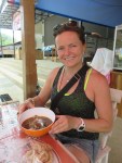 It poured down outside while we ate, but cleared up before we left. There’s a little pond in town and we walked around it looking at people, buildings and the local fauna. At one point we commented on a nice house to a guy sitting on his terrace. That rewarded us with instructions for how to find the local street food in town. As little late, but still.