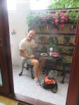 The room we’ve booked is on the third floor to give us sea view. It’s to late and too dark to see the sea, but we hear it when we open that balcony doors. This is high class, and worthy of our anniversary.