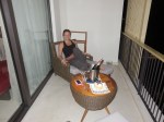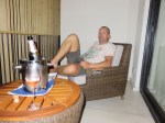 Katja have informed the hotel in advance about our anniversary and ordered pink champagne on ice. In addition to that the hotel has put out a special cake for us. We sit on the balcony in thirty degrees with the sound of the ocean and wind while sipping champagne and eating cake. Good thing we’re only celebrating our wedding anniversary rather rarely.