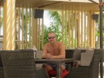 The weather here is unstable, but ok. We go to the pool and I fall asleep on the sun bed. Forty minutes later we have to take cover in the pool bar because of rain, and we order lunch while we’re there.