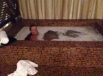 We have half an hour in a steam sauna before spending another half hour in a big bathtub. Taking a sauna when it’s thirty five degrees outside might seem strange to some. I agree. The bath was lovely, though. Then we had massage. The little lady, ups! spa therapist, had really good pressure and did work wonders on my stiff thighs from yesterday’s Bulgarian split squat. Then it’s over and we can finally change back into decent clothing again. It’s not that I don’t appreciate a good massage, and I did write down the one we visited in Vang Vieng in Laos, but this is too much towards the other side of the scale. Or I’m not really the target for their services.