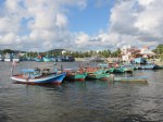 We kept rolling towards town and decided to turn left at the roundabout we encountered. Just a few meters into that road the night market starts. We walk through the market where people are preparing for the evening. Tanks of fish are displayed with a lot of different species to choose from. After our little walk we decide to ride back home and take a taxi down here for dinner.