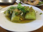 When we return for dinner we’re just ahead of the main wave of people. We get barbequed tuna and prawns with rice and greens. A delicious meal. It seems like the locals use this market also though it’s hard to tell. There’s a lot of Vietnamese vacationing here at the moment.