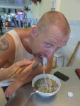 There’s a lot of the local restaurants that’s closed midday. We get a taxi, there’s lots of them here, to take us into town. Unfortunately we find there’s several restaurants that’s closed there as well. We do find as little place where a few other tables are occupied. We get Pho Bo, noodle soup with beef. It tasted good, but it’s been a long time since I had beef this chewey.