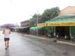 It rains. A lot. For hours. We just stay indoors and read, watch videos and relax. At a point we figure we need lunch and deliver laundry. We borrow umbrellas in the reception and take a walk.