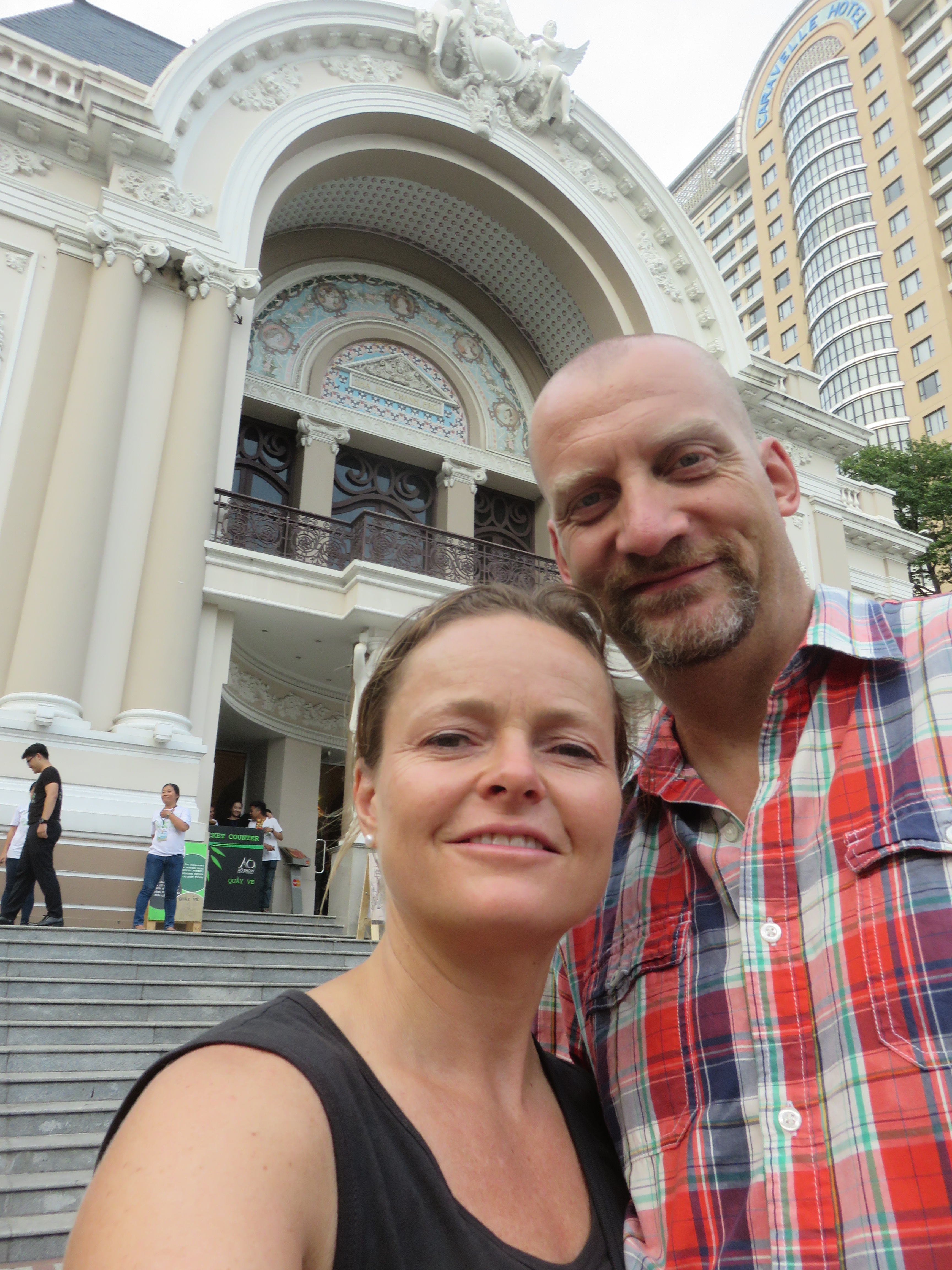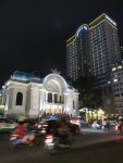 We take a taxi up to the opera house. This is one of the landmarks in HCMC. It was certified as a national relic in 2012 and it’s built in 1898. At the 300th anniversary of the founding of Saigon, that coincided with the 100th year anniversary of the opera house, it was restored. It’s located next to hotel Continental and the Hyatt hotel in a fashionable part of the city. We’re here to see a show.