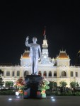 We walked down towards the opera and from there to the plaza along the Nguyen Hue road. It’s a big open space where lots of people are gathering on this Friday evening. It’s people of all ages and everybody seems to be having a good time. There’s no alcohol to be seen and I’m not sure if there’s a law regulating it or if the Vietnamese drink less in the cities. We’ve been told they drink with both hands until stupor in the countryside.