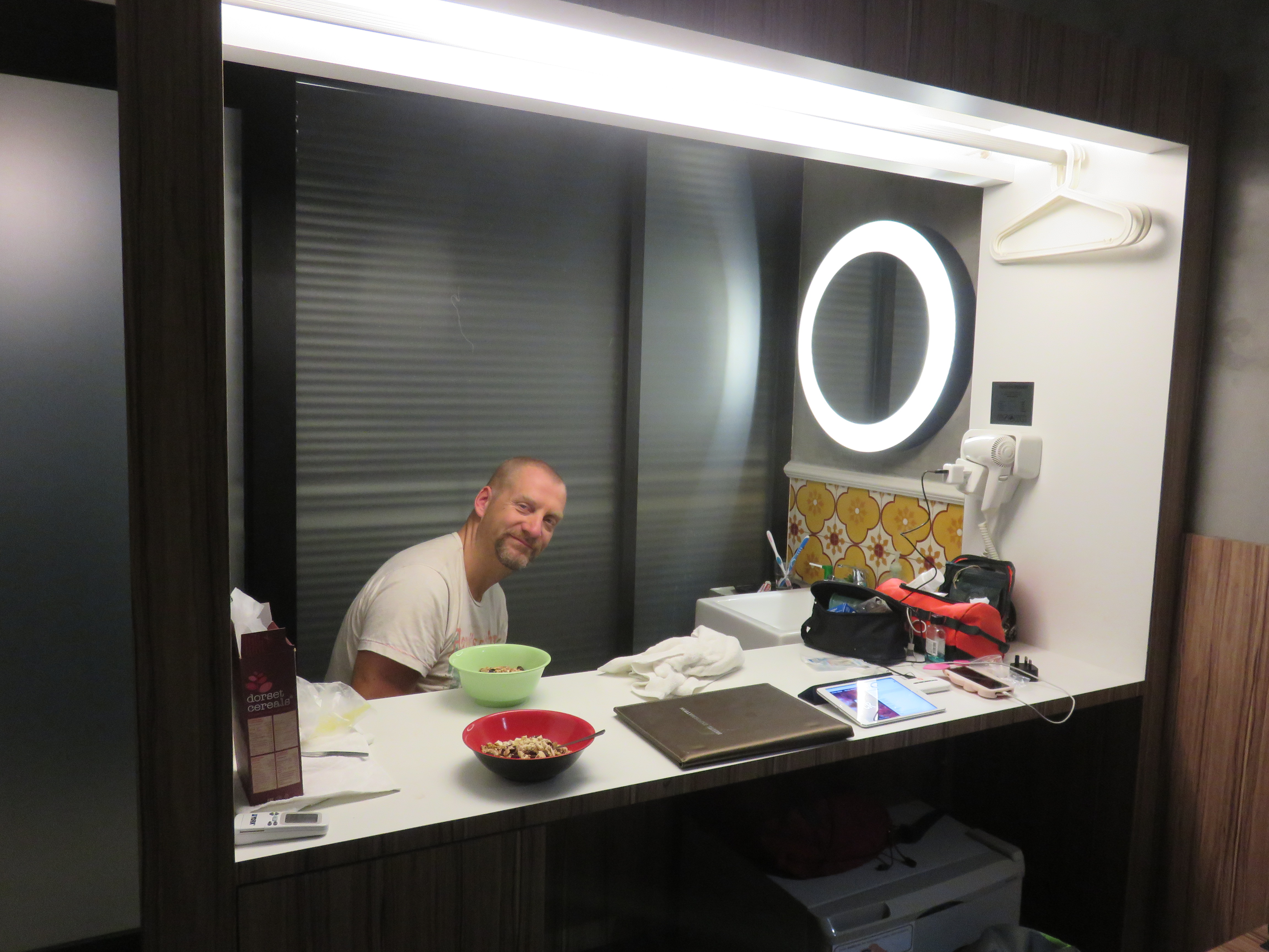 Back up in our hotel we just relax and watch a little tv before it’s lights out. I’ve been having as little runny nose and a sore throat for a couple of days new. The nasal spray I bought at the pharmacy is way stronger than anything home and drilled a hole through my nostrils and sinuses. They’re open like a highway tunnel. Looking forward to seeing if it’ll stay that way until tomorrow.