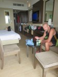 Since I’m staying clear of dairy products we get yogurt to use with the muesli. After lunch we talk and just hang out in the room before we use the laundry. Katja goes back out to the sun, I back to my confine in the room. Read, watch video, play games and blog. Rinse and repeat. Nothing much more to report.