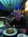 We go back to the pool bar for sunset and dinner and Katja gets her burger. I have a rather dry spaghetti Bolognese that makes no waves in my culinary sea.