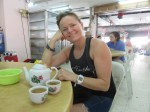 After looking at the monkeys, walking around and enjoying the view we take the tram down the mountain side. Back down at the bottom we start walking towards a big monastery. Down at the bottom of the hill we’re hungry and stop at a street stall to get lunch. We have rice in clay pot, and it’s surprisingly good. There’s little and long between any piece of meat, but the broth steamed rice was very good. We also enjoy a nice cup of Chinese tea which was very good and you get to top of the teapot as many times you like.