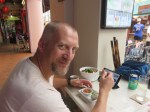 Afterwards we walked down towards Chinatown. We’re looking for lunch as we’re both totally burned out from the training. We find a food street and settle on a Vietnamese restaurant. A good choice for the both of us. Delicious fresh food. After lunch we walked a little in Chinatown before taking the MRT back towards home. We’re pretty beat and are going out tonight so we prioritize a little power nap. But before that can happen we have to get home.