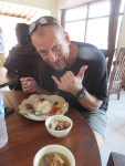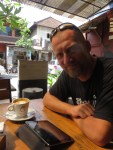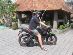 When Katja came back we went out to rent a motorbike. I want a real bike since I’m driving to pencak silat training most days we’re here. We end up renting the bike of one of the hotel staff. A 150cc. It’s enough power and good handling. I’m happy. The virgin ride is aimed at the babi guling place we love down the road. Oh, what sweet taste. I have two portions and love ’em both.