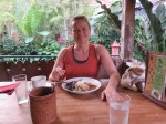 We ask Rachel about restaurant recommendations and she points to the last one Jenny told us about that we haven’t tried yet. We go there and find they actually serve Babi Guling on Sundays. Usually their out of it by 16:00, but it seems to be a slow day as they can serve us at 18:00. It’s good, but not as good as our favorite little place. The price is about double of what we normally pay as well. After dinner we ride home and keep on talking and Katja makes a yoga class or two as homework. She finish one that she will do herself tomorrow afternoon with her own evaluation. Then I will do it, by her guidance, and write a report. The reports are both to be handed in as part of the assignment in the course. These two plus another full class is what’s left of the papers to be handed in, as far as she knows. It can be handed in after the course is ended, but everyone knows it’s best to get it done immediately instead of delaying.