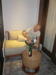 We drive to the rendang place and have our last meal there. It’s cheap and good as always. Back at the hotel we get our bags from the reception and get in the car. Putu takes us to our last hotel on this tour, and we’ve upgraded these last few days. The room is great, the bed fantastic and we’ll have a few good days and nights here. Katja got Putu to stop at a Mart and we got a couple of beers we enjoy out on the terrace.