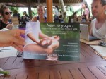 We use an hour and fifteen minutes in the morning rush to get from our hotel to Ubud. It’s chaotic at times, but we manage and mostly keep to the right roads. We’re early as we know the class will fill up quickly. Katja will get in as she’s assisting, but I want something for my driving and aim to be in the front row when the class start.