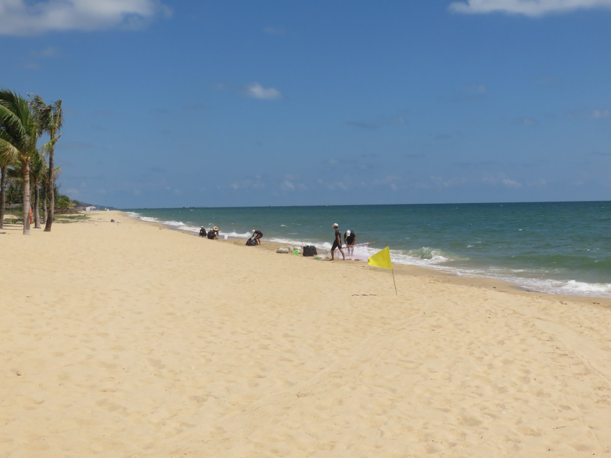 Beach cleaning in progress
