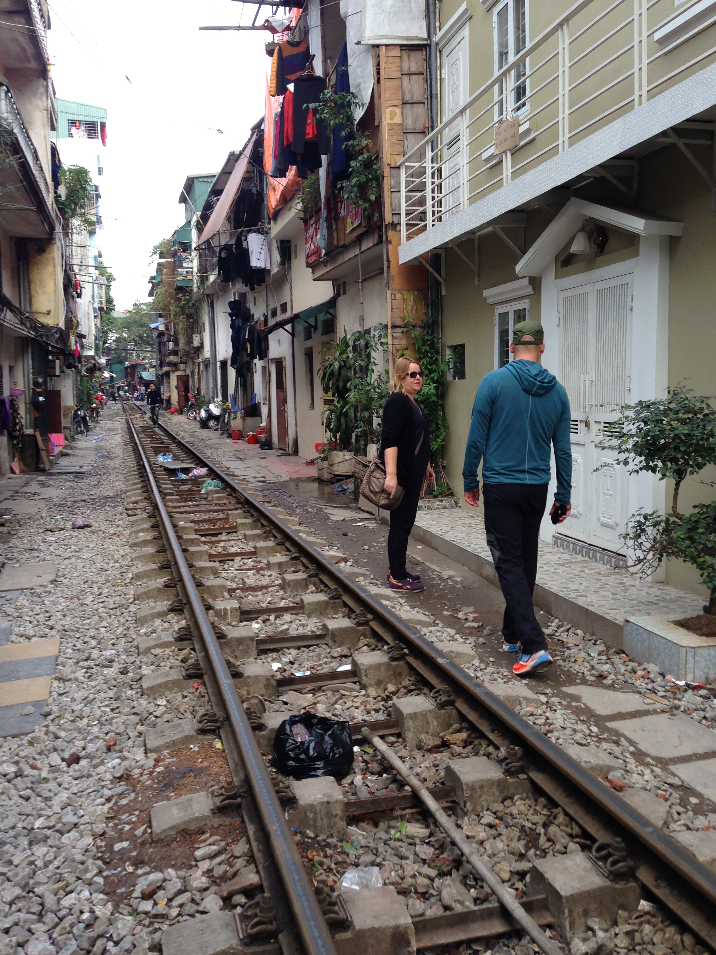 Walking through an alley where the train runs.