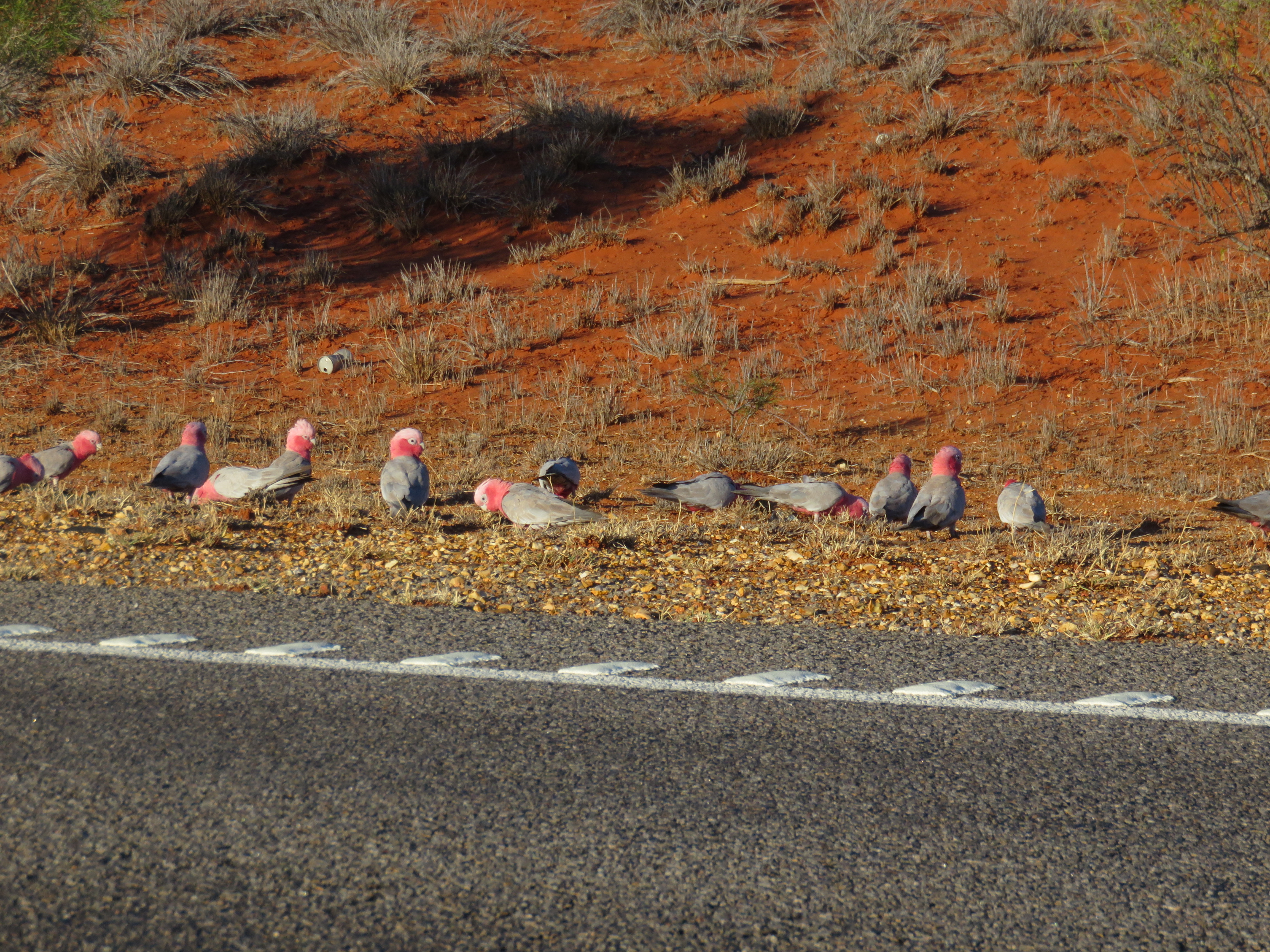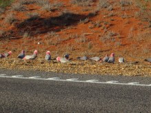 Parrots at the side of the road