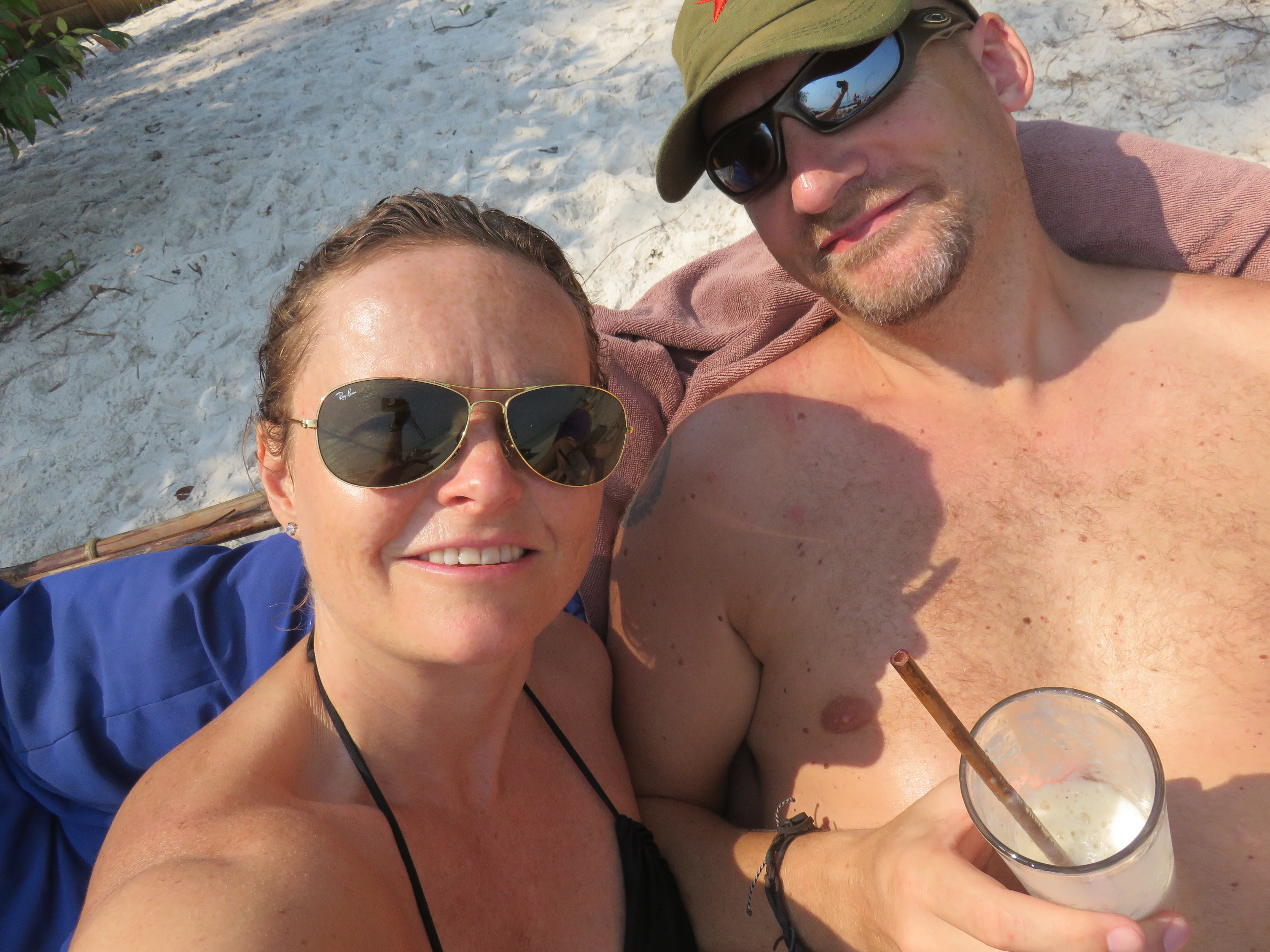 Relaxing with a fruit shake in the sun