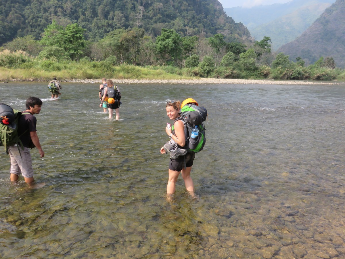 Wading across the river. Man, that hurt under the feet