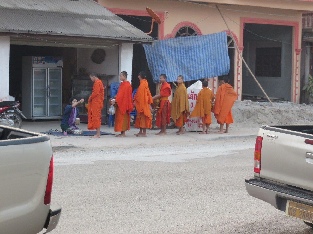Monks doing the morning rounds to get food