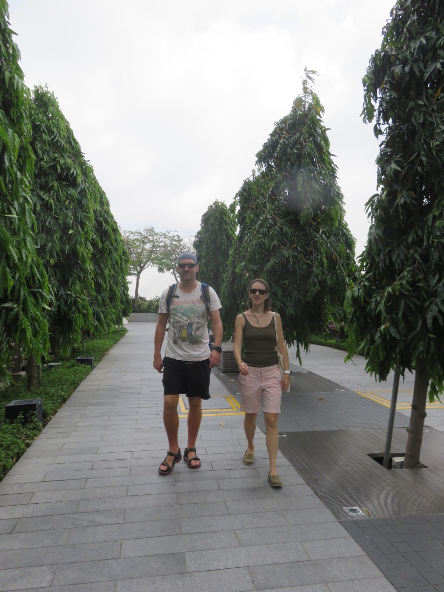 Walking on the roof over to the gardens