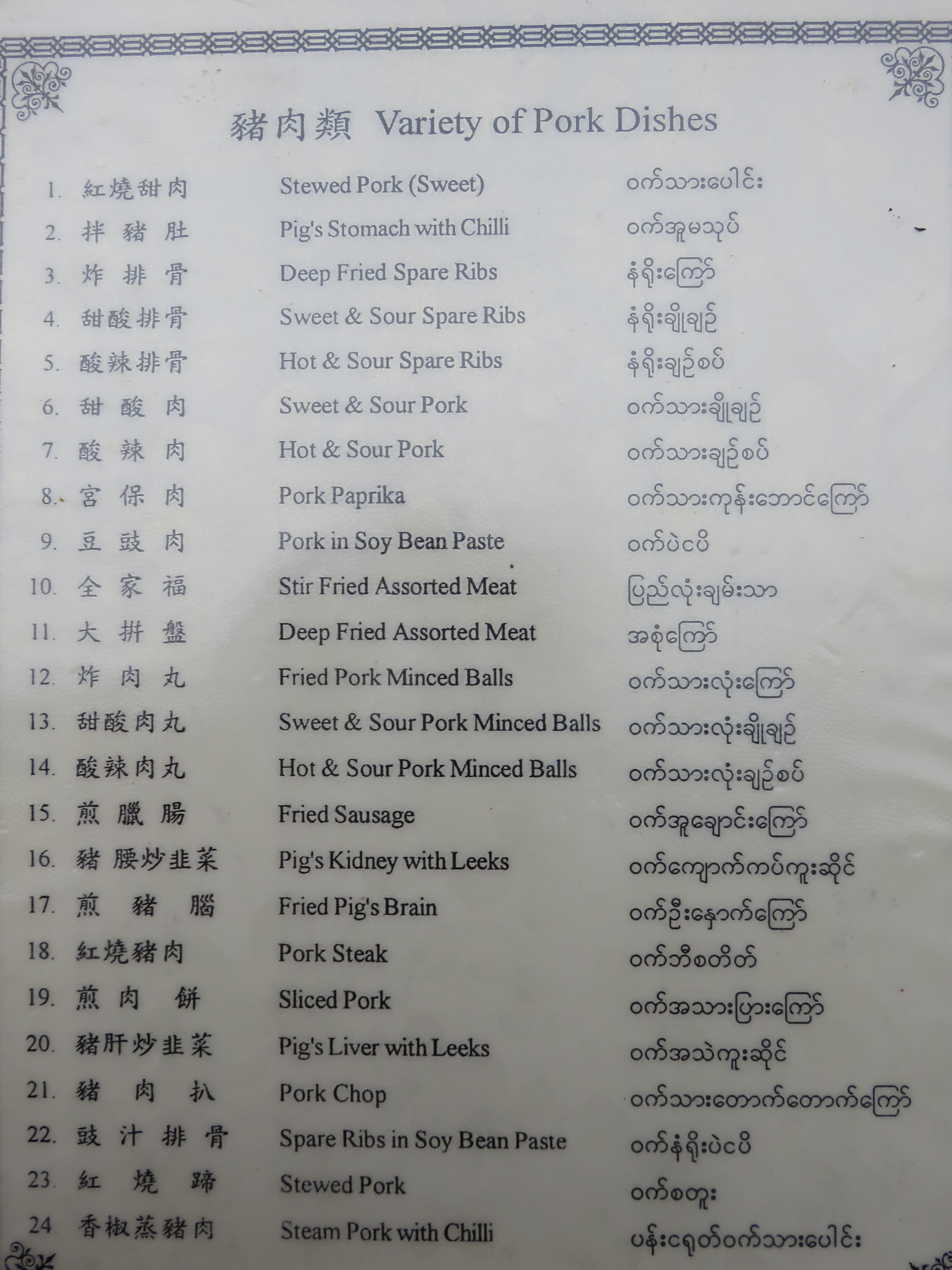 A lot of different pork-stuff on the menu