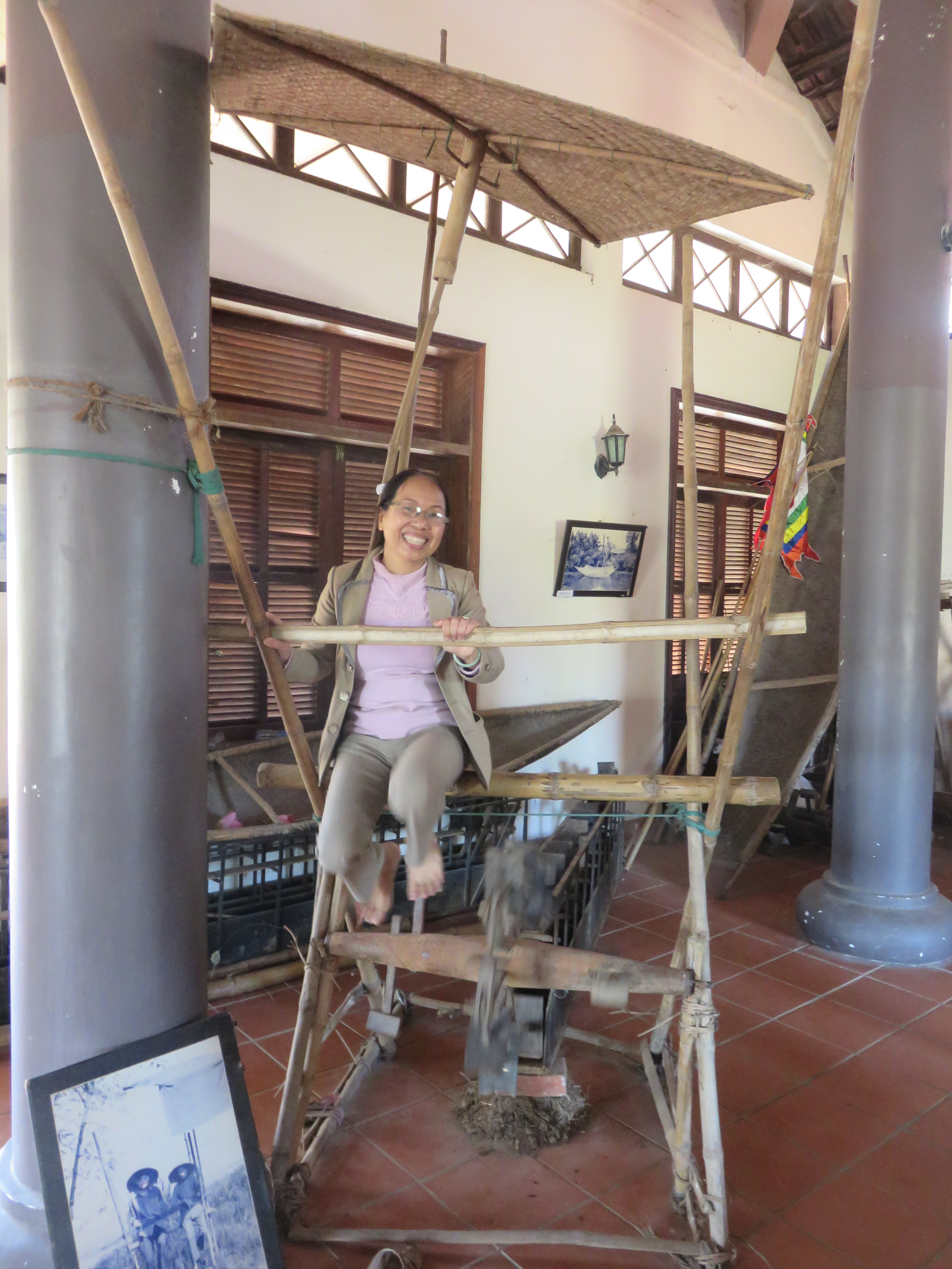 IMG_8107 08/01/2015 by arnber Leave a comment The acting lady in the little museum. Here showing of a tool for plowing the field (we think)