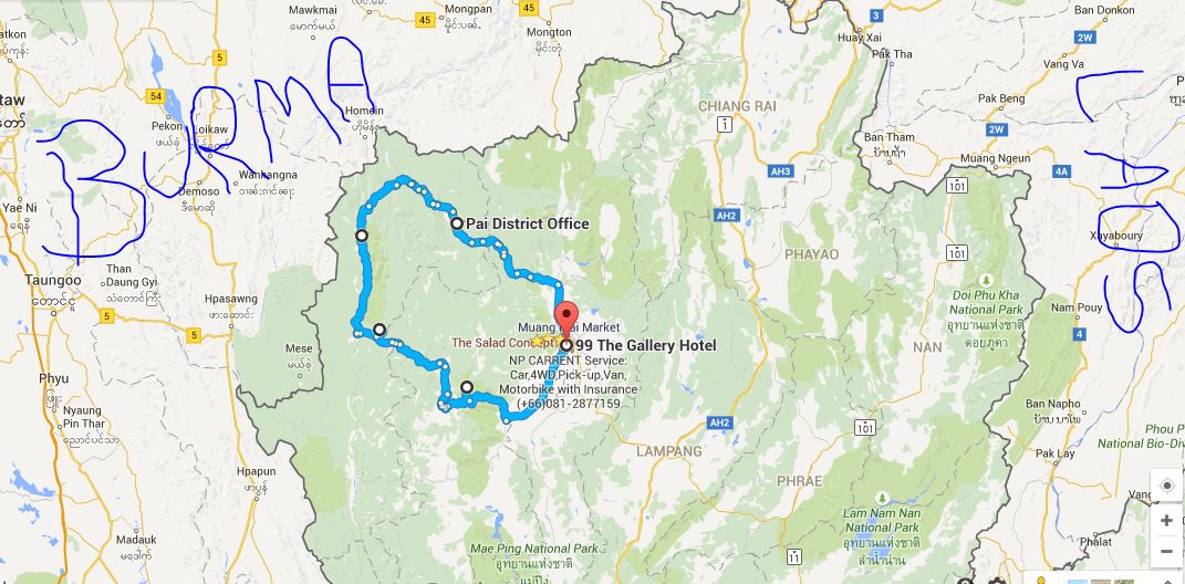 Kart 21/05/2015 by arnber Leave a comment The Mae Hong Son loop. Snipped out from Google Maps. The hand writings are mine