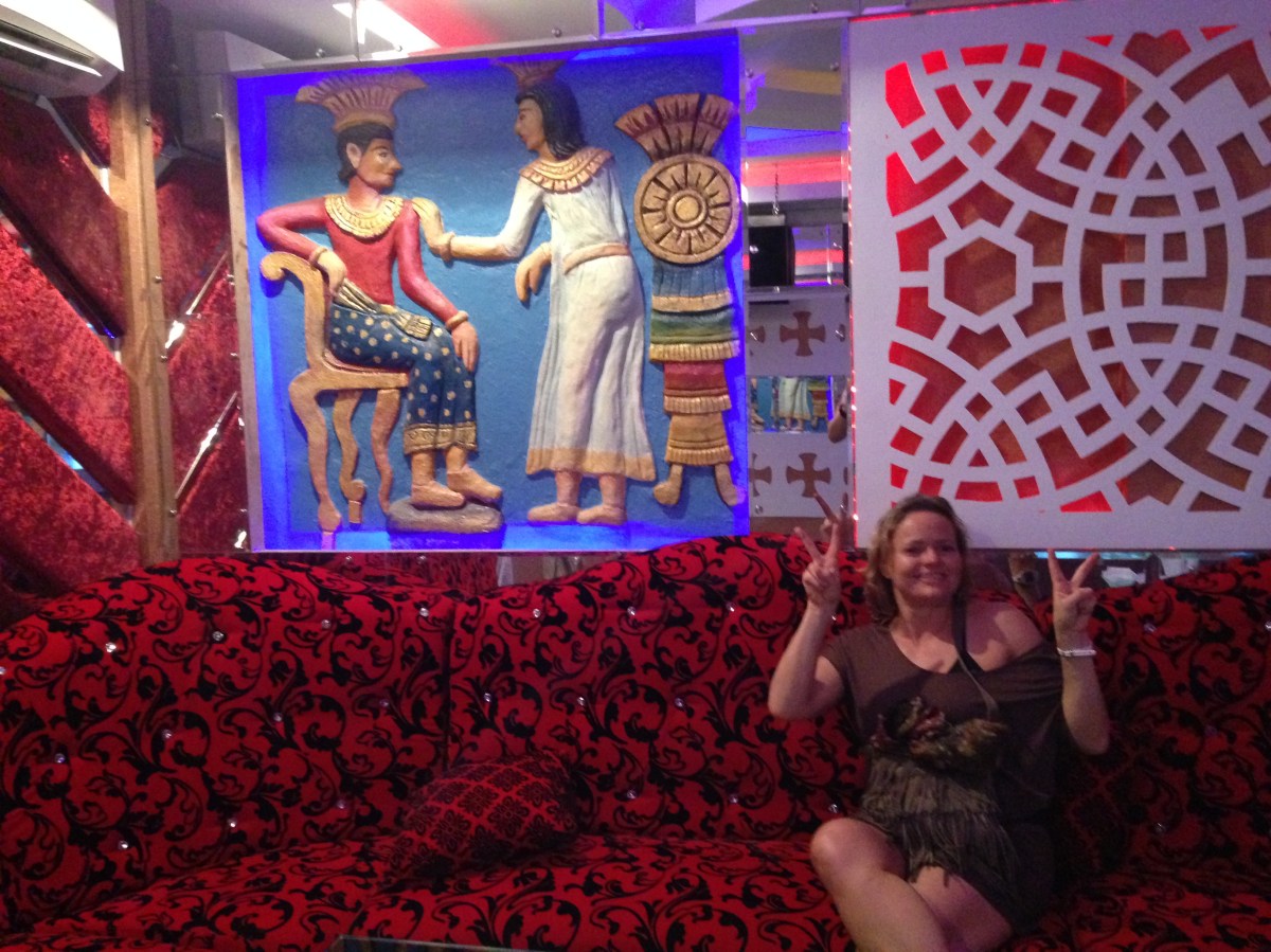 Katja in the red velvet sofa